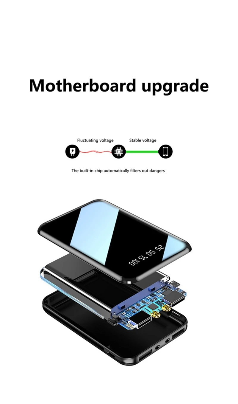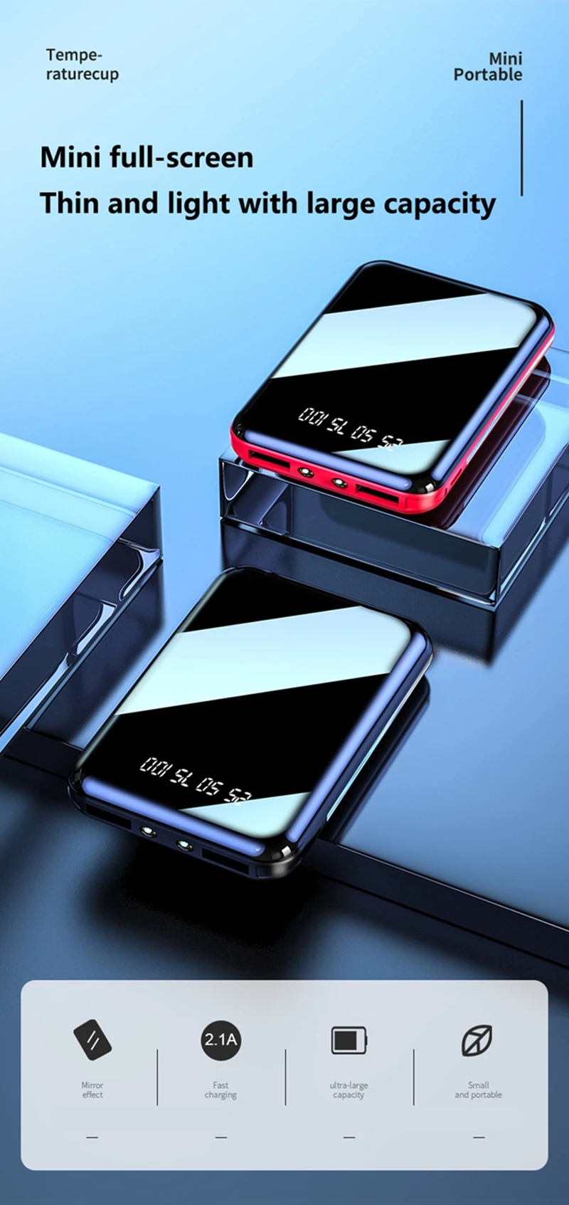 XIAOMI 50000mAh Mini Power Bank Portable Charger Mirror Screen LED Digital For iPhone Xiaomi Huawei Samsung External Battery